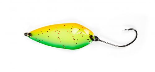 Lucky John EOS – серия колеблющихся блесен для ультра- и лайтовой спиннинговой ловли, разработанные для ловли форели. Эти блесны соответствует всем требованиям, предъявляемым к приманкам для ловли форели на платных, а так же для ловли рыбы в естественных водоемах и речках со средним течением и с небольшими глубинами. Блесны EOS имеют глубокий вогнутый профиль с особой формой изгиба хвостовой части, что придают им своеобразную игру, как во время проводки, так и при свободном заглублении. Во время проводки приманка перемещается строго по линии без размашистых колебаний с боку на бок – ее движения напоминают игру воблеров типа крэнкбейт. Приманка обладает хорошим планирующим эффектом, что позволяет использовать ее для ловли на паузах и во время свободного падения. Благодаря незначительному весу, провести блесну можно по самой поверхности воды. Самые маленькие размеры: 3.5 и 5 г рассчитаны для ловли на мелководье, они комплектуются спортивными одинарными крючками. Блесны весом 8 г отлично подходят для ловли в глубоких местах, они комплектуются тройникми. На приманку так же с успехом ловится жерех, щука, голавль и окунь. Блесны EOS оснащены высококачественными японскими крючками и фурнитурой.