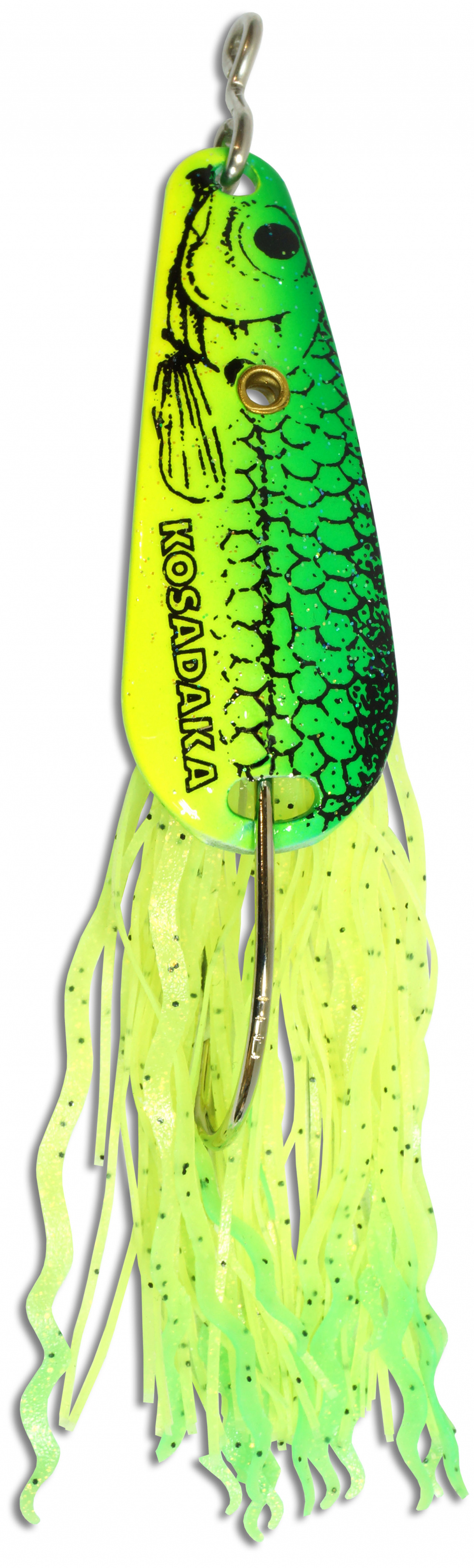 Для дополнительной привлекательности блесна оснащена дразнящей юбкой из тонких силиконовых нитей, которые не только провоцируют хищника на атаку, но и стабилизируют работу блесны во время проводки и падения. Это интересное решение добавляет игре блесны живости и изящества. Впрочем, как и установленная вместо заводного кольца прочная петля крепления, придающая приманке дополнительную свободу движения. К которому, кстати, намного удобнее прикручивать металлический поводок типа «струна».
