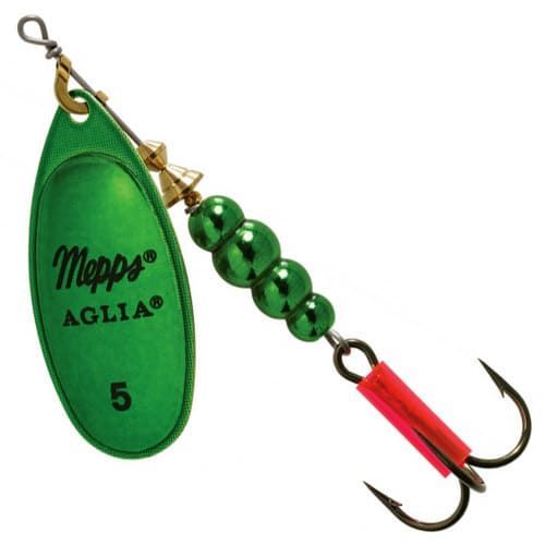 MEPPS AGLIA — одна из самых популярных классических моделей MEPPS. При вращении угол отклонения лепестка от оси составляет 60°. AGLIA устойчиво работает даже при самой минимальной скорости движения, что позволяет осуществлять ее длительную проводку в зоне предполагаемой стоянки рыбы. Возможность использования этой модели на различных глубинах делает эту приманку очень удобной для ловли большинства видов рыб. AGLIA №1, 2, 3 хороши при ловле форели, окуня, голавля, жереха, язя, то более солидные №4, 5 — часто незаменимы при охоте за тайменем и крупной щукой. AGLIA в основном предназначена для водоемов со слабым течением и стоячей водой. При ее использовании на быстрине, проводку следует осуществлять только вниз по течению.