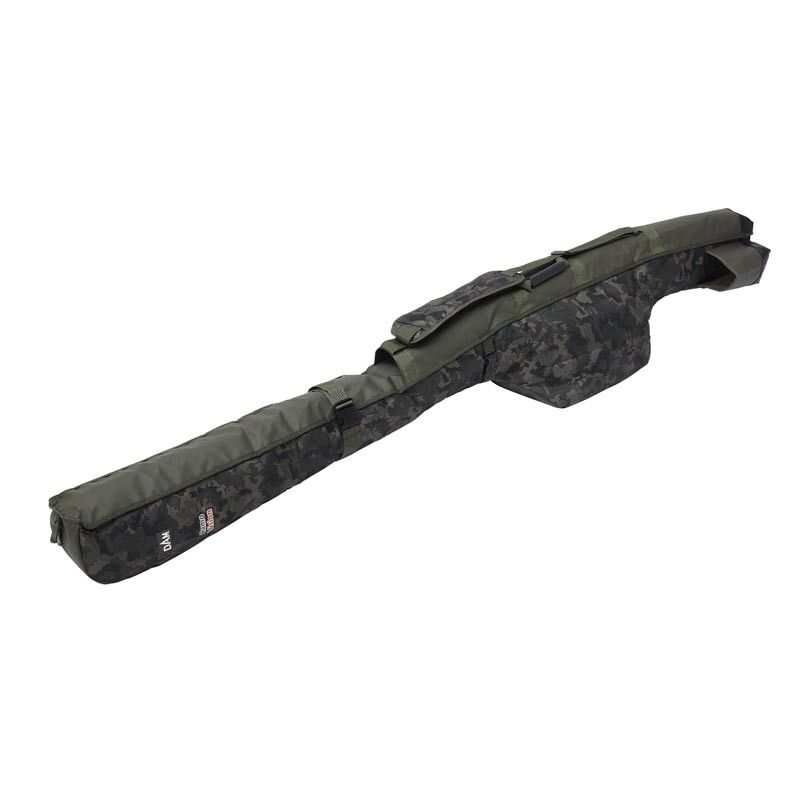 Чехол для трех 10 футовых карповых удилищ с мягкой подкладкой, изготовленная из оливково-зеленого полиэстера Polyester Camovision 600D. С каждой стороны, на нижнем торце, чашки для удилищ, подсачеков, стоек или зонтика, поддерживаемые регулируемыми ремнями с пряжками. Простая, но оригинальная конструкция. Имеет резиновую ручку для переноски и регулируемый ремень для переноски с толстой набивкой на плечо.
