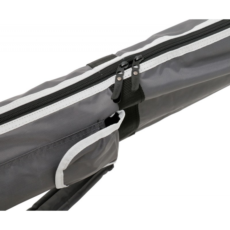Мягкий чехол, предназначенный для транспортировки удилищ с присоединенными катушками. Выполнен из прочной, износоустойчивой ткани. Чехол закрывается на молнию, для переноски предусмотрена ручка и наплечный ремень. Внутри имеются фиксаторы для закрепления перевозимых удилищ.