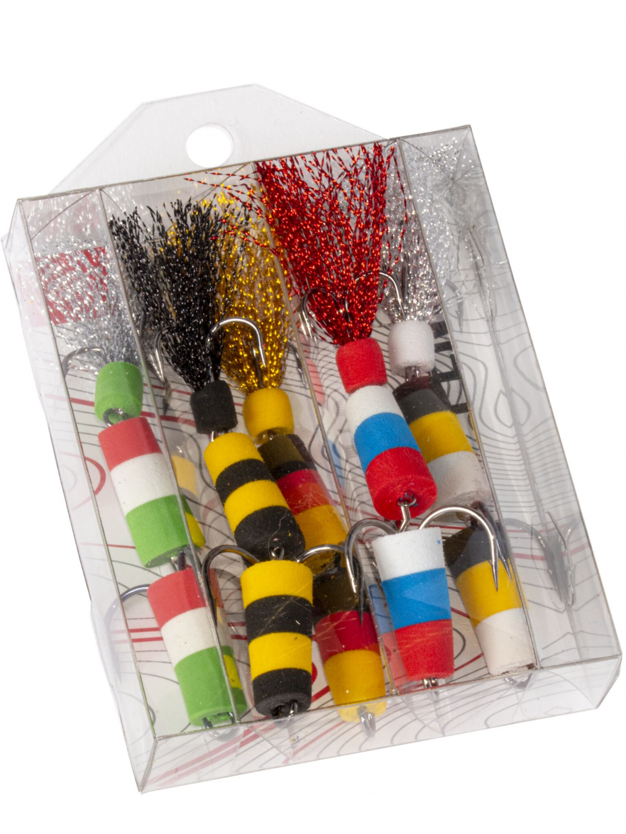 Набор классических приманок из пяти штук. Mодели для ловли судака, щуки и сома методом джига, ловит окуня, жереха и др. Попадаются даже сазан и лещ. Применяеюся с грузом весом 10-60 г. Обладает отличной баллистикой, что важно при ловле с берега. При хорошем клёве, рыба садится на большой тройник, при слабом - кусает за хвост и прихватывает тот тройник, что поменьше.