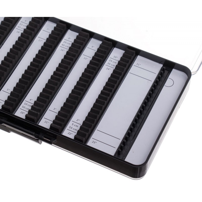 Двусторонняя поводочница с прозрачными крышками. Отличается повышенной емкостью: способна вместить до 200 поводков. Корпус изготовлен из качественного, прочного пластика. Крышки фиксируются надежными замками. Внутри отделений находятся линейки с подвижными штырьками, которые помогают изготавливать серии поводков заданной длины. Мягкие вкладыши из EVA не травмируют леску. Эта поводочница отлично подойдет как для фидера, так и для матчевой ловли.
