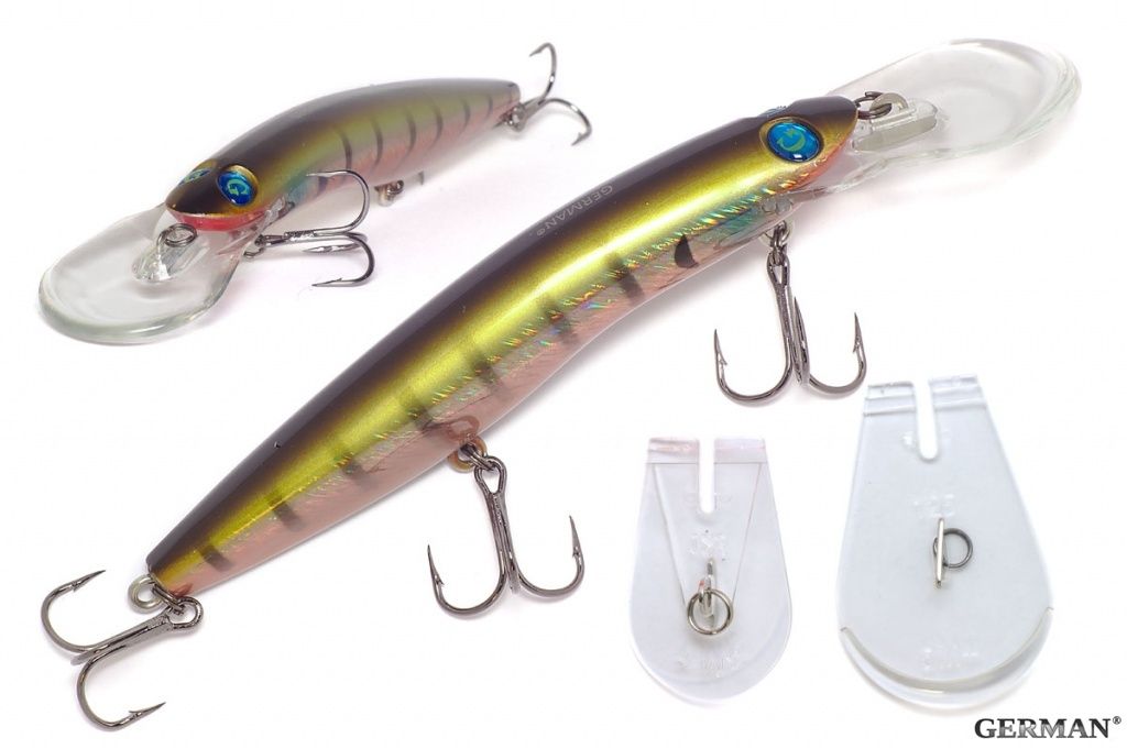 Одна из топовых линеек троллинговых воблеров воблеров от компании GERMAN. Почему топовый? потому что это одна из немногих удачных копий мирового воблера Halco SORCERER. Рекомендуемый объект ловли - щука, судак, крупный окунь, иногда сом. Поставляется с 3 сменными лопатками, 3+, 5+,8+