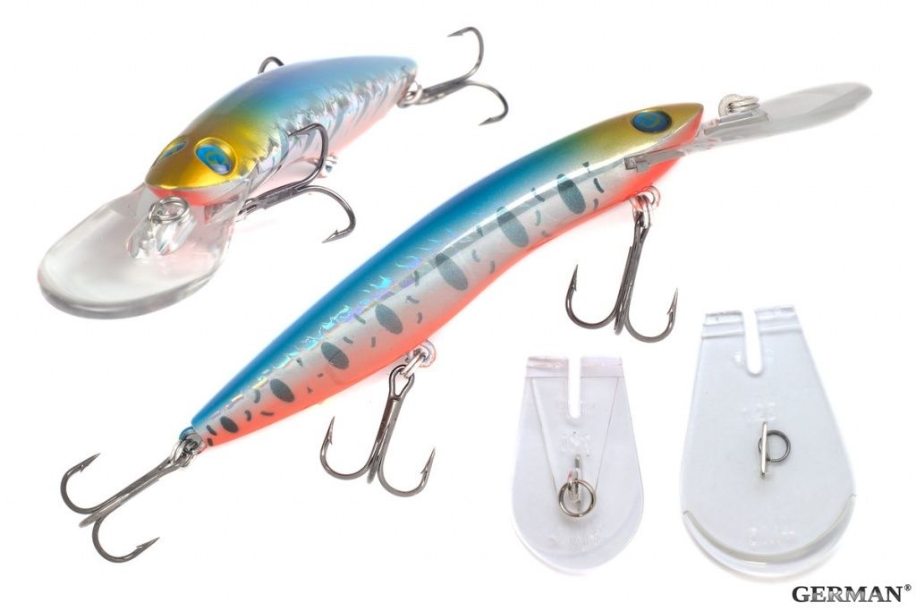 Одна из топовых линеек троллинговых воблеров воблеров от компании GERMAN. Почему топовый? потому что это одна из немногих удачных копий мирового воблера Halco SORCERER. Рекомендуемый объект ловли - щука, судак, крупный окунь, иногда сом. Поставляется с 3 сменными лопатками, 3+, 5+,8+