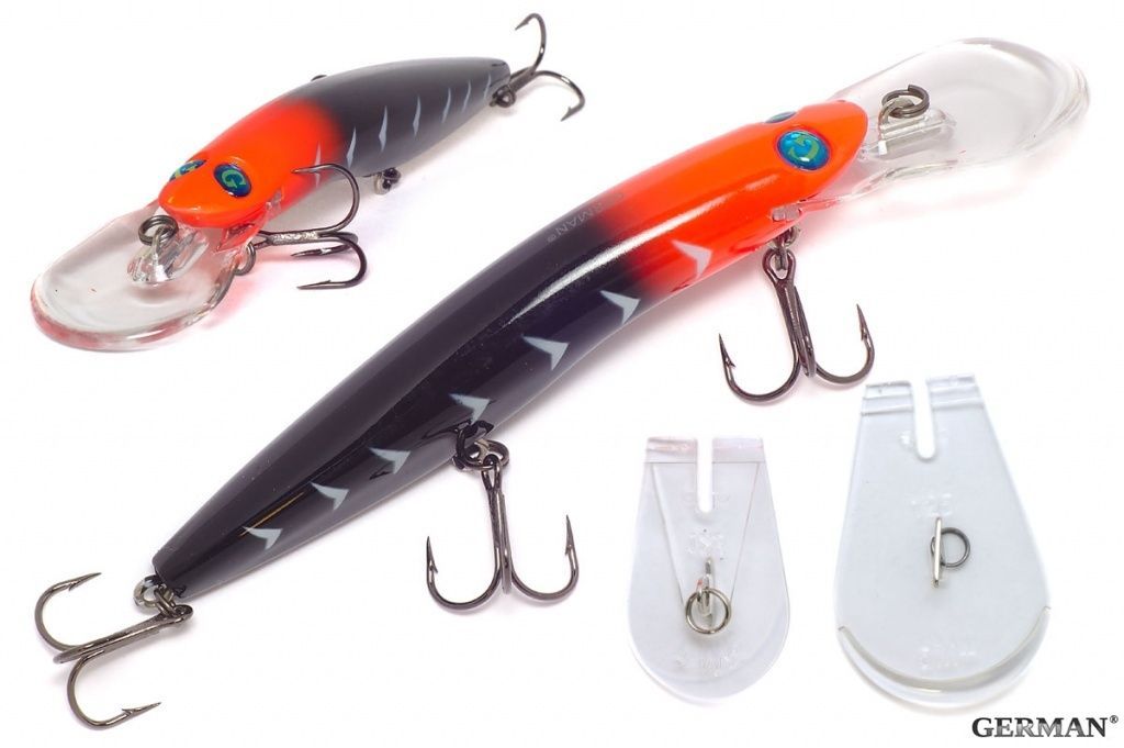 Одна из топовых линеек троллинговых воблеров воблеров от компании GERMAN. Почему топовый? потому что это одна из немногих удачных копий мирового воблера Halco SORCERER. Рекомендуемый объект ловли - щука, судак, крупный окунь, иногда сом. Поставляется с 3 сменными лопатками, 3+, 5+,8+