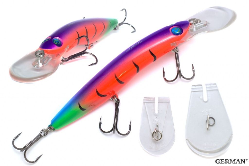 Одна из топовых линеек троллинговых воблеров воблеров от компании GERMAN. Почему топовый? потому что это одна из немногих удачных копий мирового воблера Halco SORCERER. Рекомендуемый объект ловли - щука, судак, крупный окунь, иногда сом. Поставляется с 3 сменными лопатками, 3+, 5+,8+