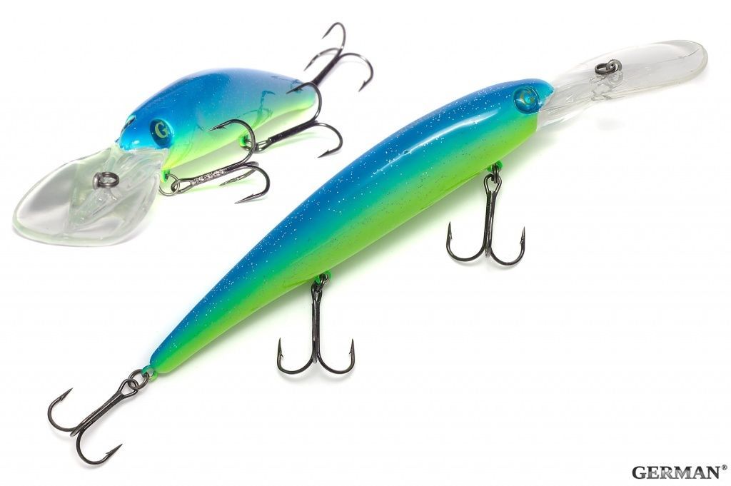 Универсальный воблер семейства минноу от компании GERMAN. Хорошо работает при троллинге,благодаря своей игре, а так же заглублению на 7-9 метров. Хорошо зарекомендовал себя среди рыболовов, благодаря своей цене, а так же результатом. Целевая рыба - щука, судак, крупный окунь