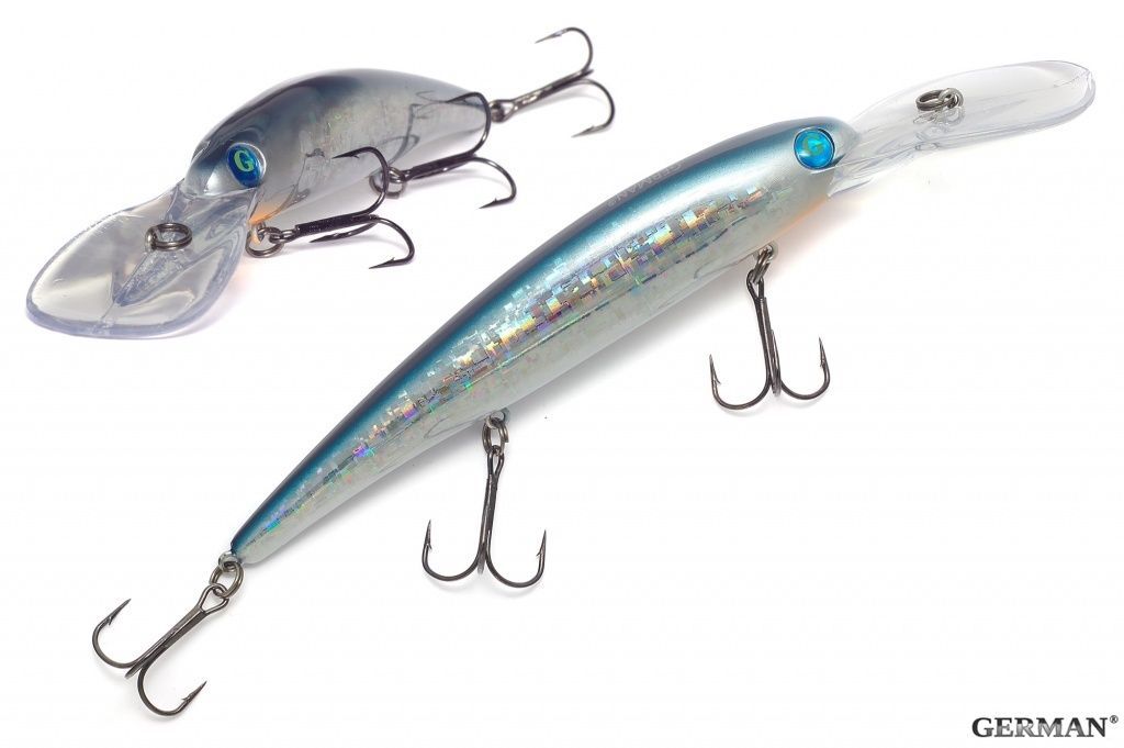 Универсальный воблер семейства минноу от компании GERMAN. Хорошо работает при троллинге,благодаря своей игре, а так же заглублению на 7-9 метров. Хорошо зарекомендовал себя среди рыболовов, благодаря своей цене, а так же результатом. Целевая рыба - щука, судак, крупный окунь