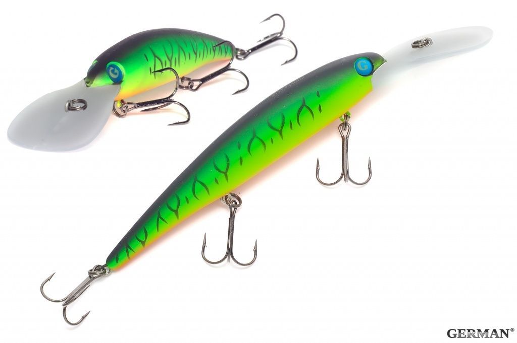 Универсальный воблер семейства минноу от компании GERMAN. Хорошо работает при троллинге,благодаря своей игре, а так же заглублению на 7-9 метров. Хорошо зарекомендовал себя среди рыболовов, благодаря своей цене, а так же результатом. Целевая рыба - щука, судак, крупный окунь