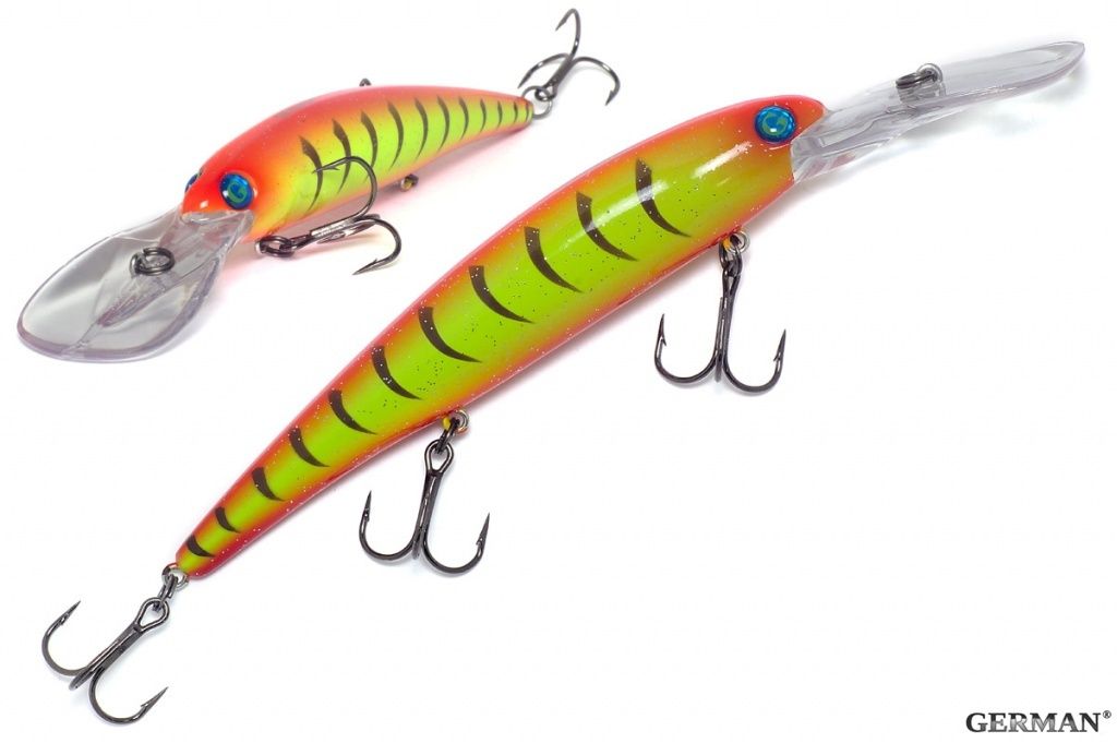 Универсальный воблер семейства минноу от компании GERMAN. Хорошо работает при троллинге,благодаря своей игре, а так же заглублению на 7-9 метров. Хорошо зарекомендовал себя среди рыболовов, благодаря своей цене, а так же результатом. Целевая рыба - щука, судак, крупный окунь