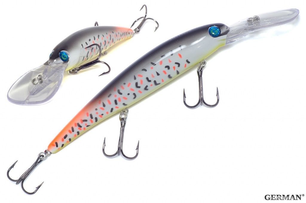 Универсальный воблер семейства минноу от компании GERMAN. Хорошо работает при троллинге,благодаря своей игре, а так же заглублению на 7-9 метров. Хорошо зарекомендовал себя среди рыболовов, благодаря своей цене, а так же результатом. Целевая рыба - щука, судак, крупный окунь