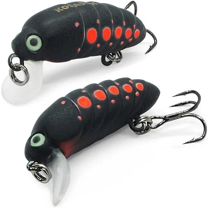 Миниатюрный воблер Kosadaka Cocoon 32F внешне напоминает насекомое или личинку. Овальное тело приманки имеет рельефную поверхность. Спереди расположена маленькая лопасть, а в задней части - небольшой тройник. Длина воблера составляет 32 мм, а вес - 2,2 грамма. Для работы с такой приманкой лучше всего подойдут удилища класса L и UL. Cocoon относится к плавающему типу и погружает на глубину около 30 см. Лучше всего он подходит для мелководных участков рек и прудов. Жучок Cocoon 32F отлично подойдет для ловли на течении голавля, язя, жереха, окуня. Он хорошо покажет себя на форелевой рыбалке на платных прудах.