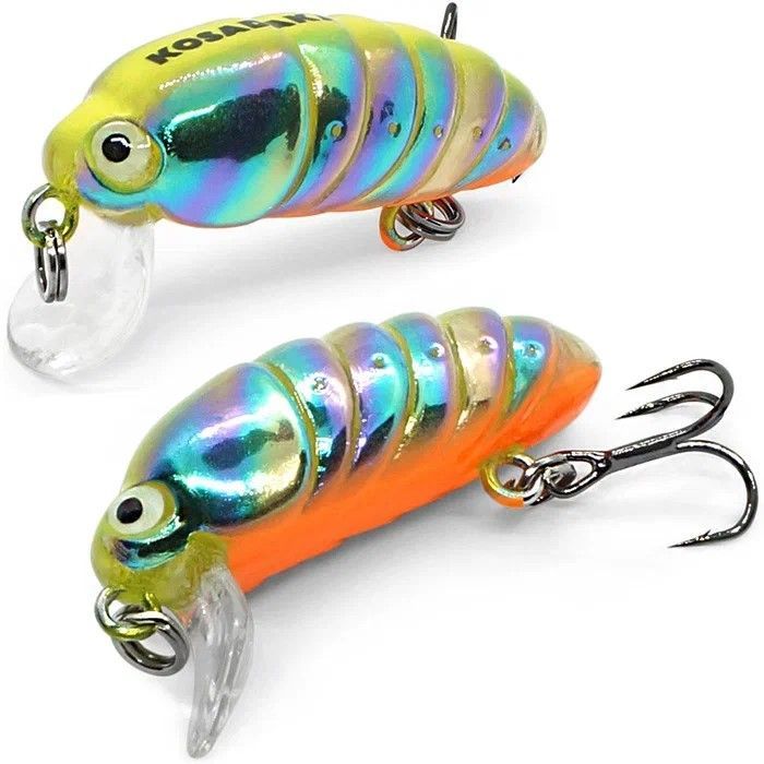 Миниатюрный воблер Kosadaka Cocoon 32F внешне напоминает насекомое или личинку. Овальное тело приманки имеет рельефную поверхность. Спереди расположена маленькая лопасть, а в задней части - небольшой тройник. Длина воблера составляет 32 мм, а вес - 2,2 грамма. Для работы с такой приманкой лучше всего подойдут удилища класса L и UL. Cocoon относится к плавающему типу и погружает на глубину около 30 см. Лучше всего он подходит для мелководных участков рек и прудов. Жучок Cocoon 32F отлично подойдет для ловли на течении голавля, язя, жереха, окуня. Он хорошо покажет себя на форелевой рыбалке на платных прудах.