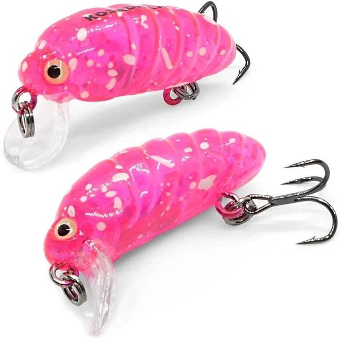 Миниатюрный воблер Kosadaka Cocoon 32F внешне напоминает насекомое или личинку. Овальное тело приманки имеет рельефную поверхность. Спереди расположена маленькая лопасть, а в задней части - небольшой тройник. Длина воблера составляет 32 мм, а вес - 2,2 грамма. Для работы с такой приманкой лучше всего подойдут удилища класса L и UL. Cocoon относится к плавающему типу и погружает на глубину около 30 см. Лучше всего он подходит для мелководных участков рек и прудов. Жучок Cocoon 32F отлично подойдет для ловли на течении голавля, язя, жереха, окуня. Он хорошо покажет себя на форелевой рыбалке на платных прудах.